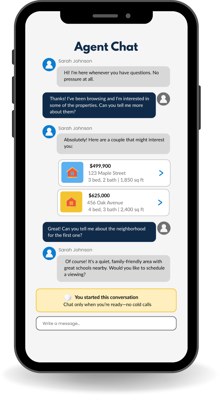 Most apps stop at browsing. Real Estate Buddy helps you move forward with guidance, clarity, and communication.